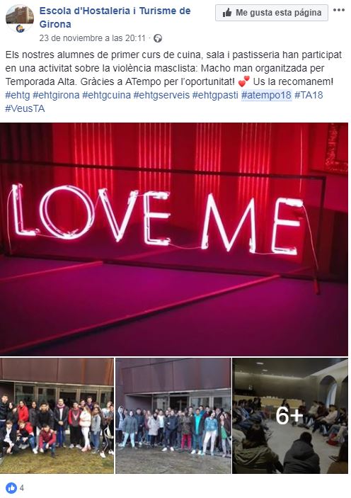 Los centros educativos de Girona y Salt están publicando, en las redes sociales, sus experiencias en el proyecto A Tempo 2018. Los institutos y colegios que han participado a lo largo del Festival en el proyecto de artes y formación de la Fundación La Ciudad Invisible, están colgando las fotografías y los vídeos que demuestran su paso por el proyecto.